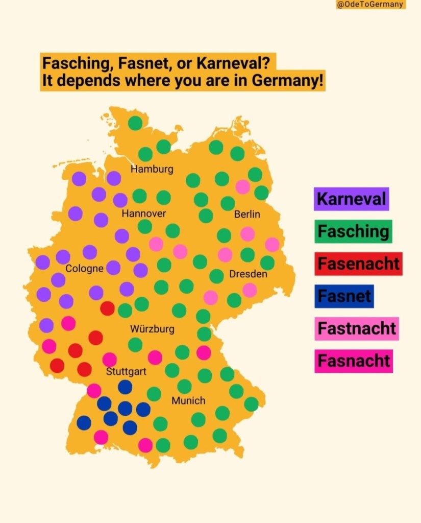 Heute ist der dritte dritte 25, (3.3.2025), heute wird Rosenmontag gefeiert. In vielen Gegenden Deutschlands ist der Karneval ein besonderes Ereignis; man sagt, es sei die fuenfte Jahreszeit und wie ihr seht, gibt es verschiedene Namen: